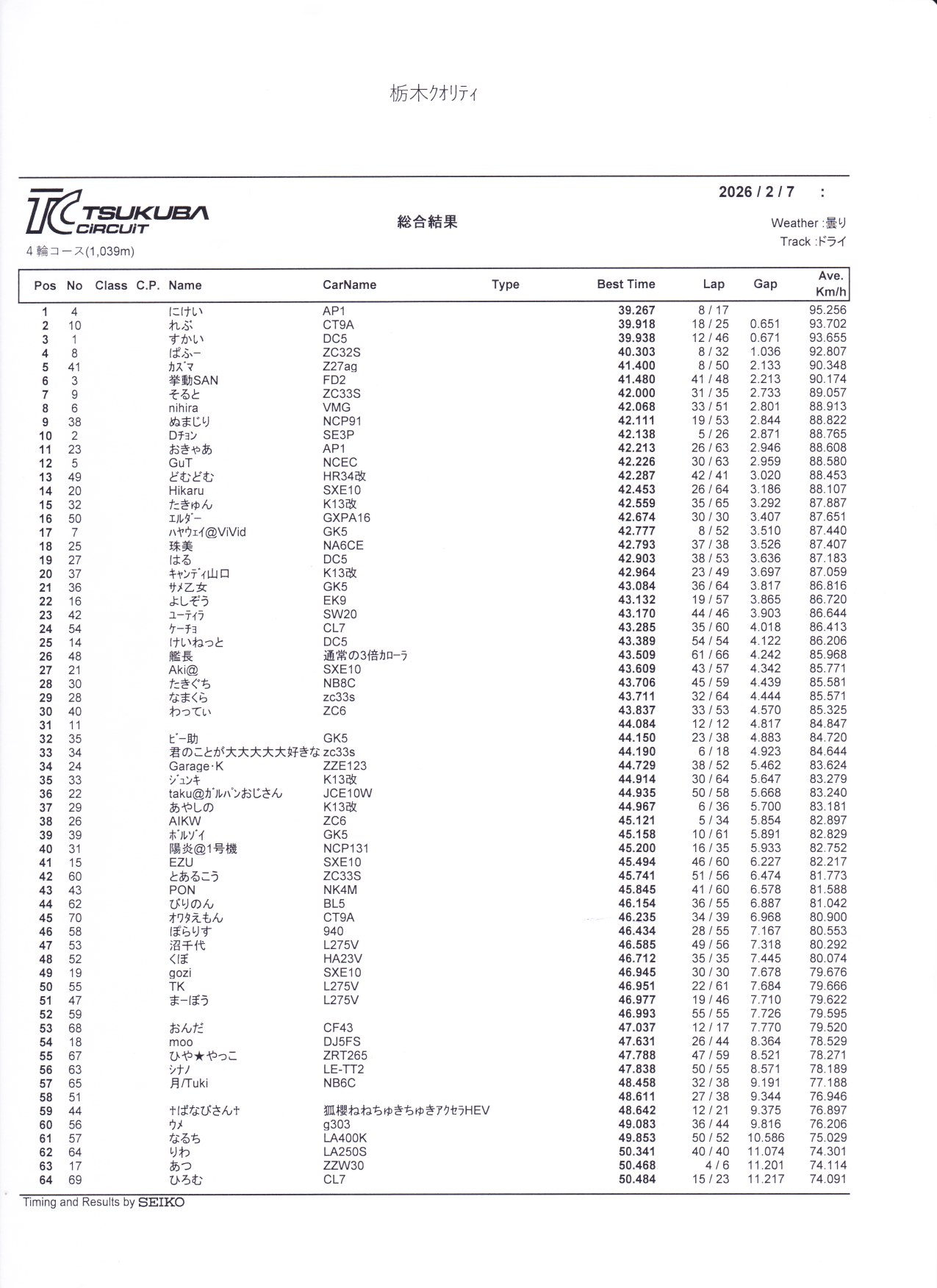 | 時間 | スタッフ集合6:30 ゲートオープン7:00 ドライバーズミーティング8:30 9:00~16:00(12:00~13:00は昼休憩) 同乗走行あり タイムスケジュール(EXCEL版) タイムスケジュール(PDF版) (前回と同様です) |